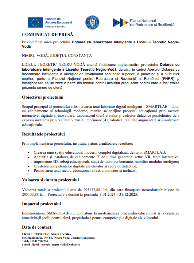 COMUNICAT DE PRESĂ